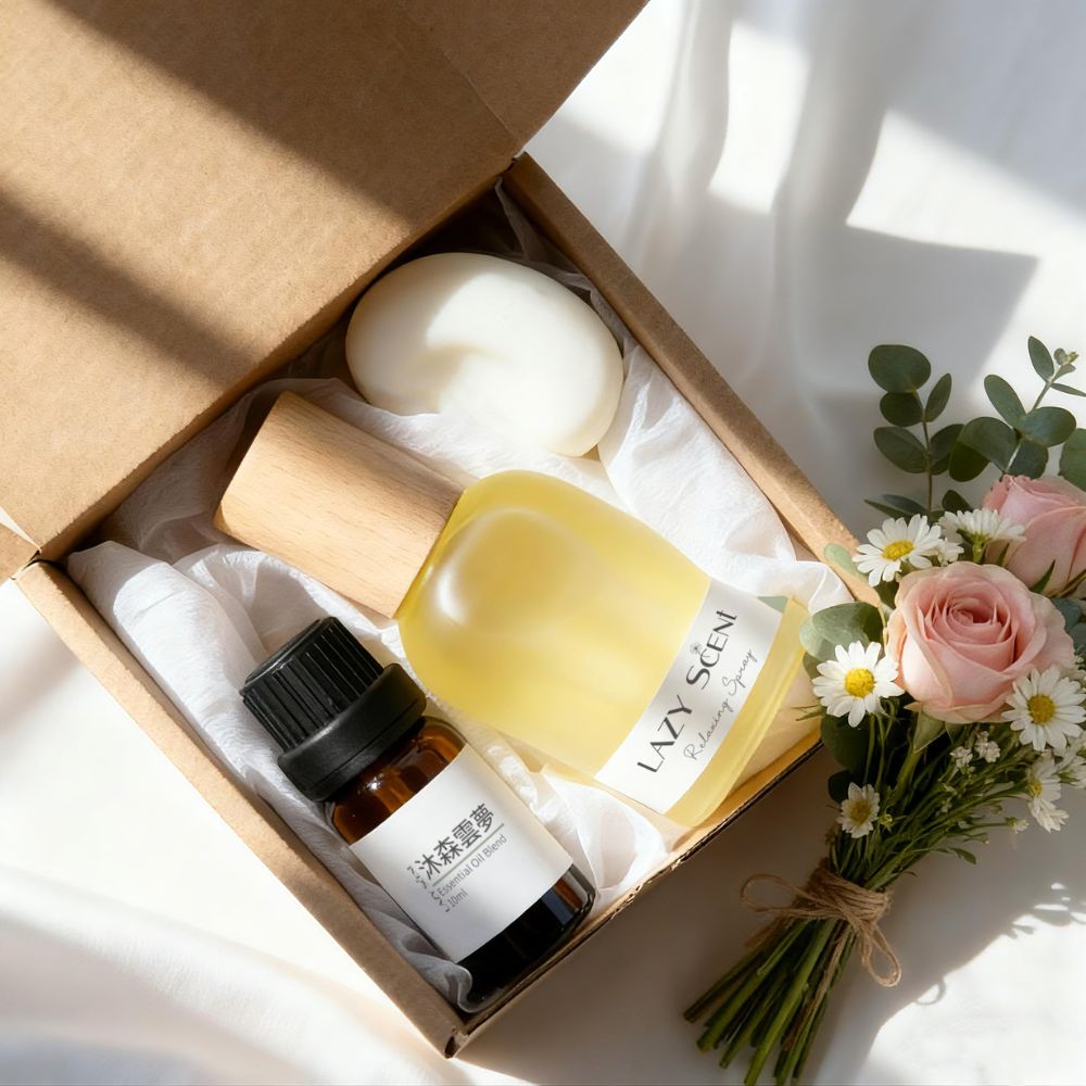 組合內容物:天然放鬆噴霧30ml x1 + 天然複方精油10ml x1 + 擴香石x1